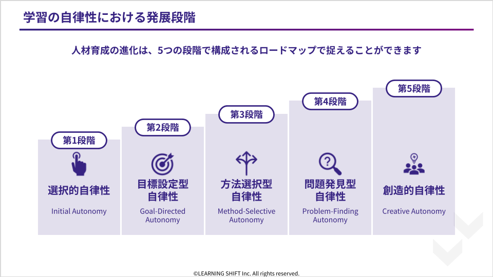 このプロセスを体系化したのが、「学習の自律性における発展段階」です。